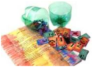 Alguns tipos de materiais alternativos industrializados são: tampinhas de refrigerante, frascos, embalagens, caixinhas de palitos de fósforo usados, embalagens vazias, caixas de sapato, de camisa, de remédios, de chás, retalhos de papéis coloridos, retalhos de pano, entre outros.